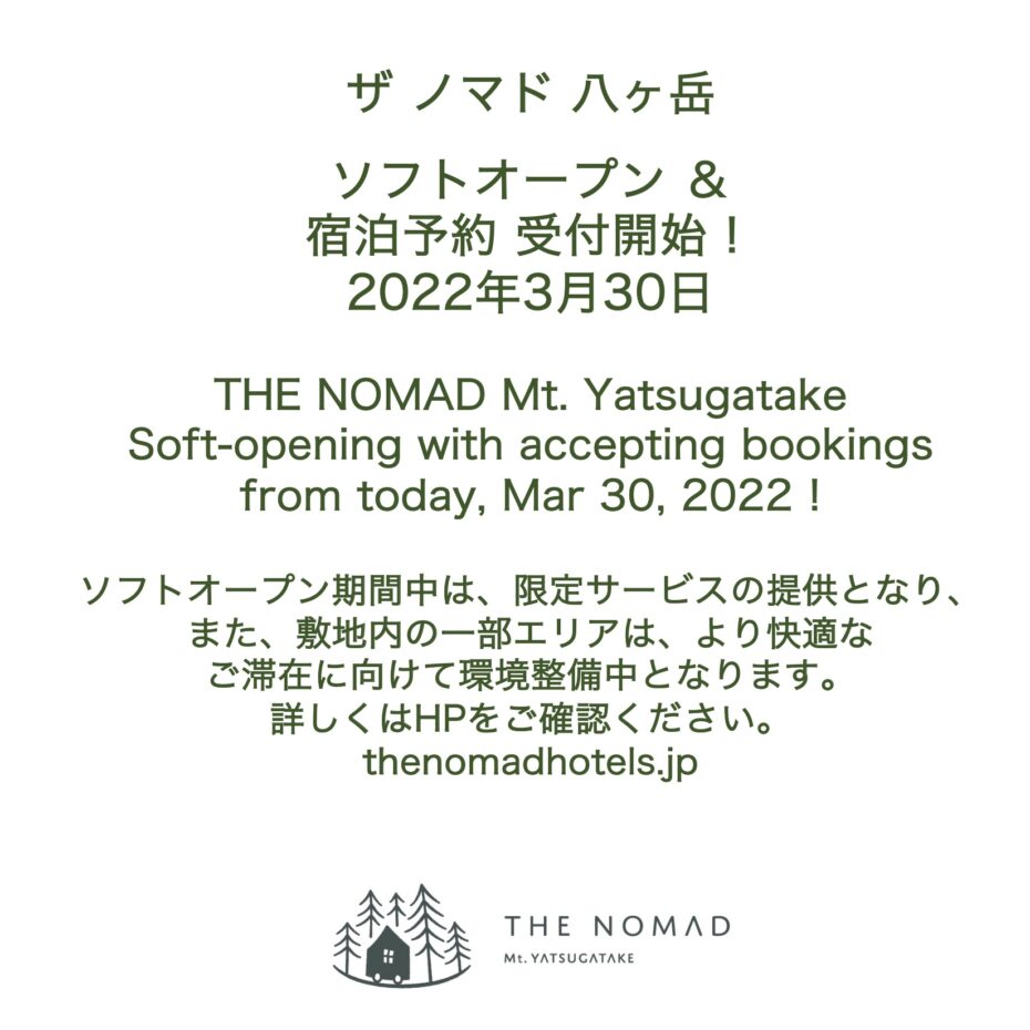 THE NOMAD Mt. YATSUGATAKE | ザ ノマド 八ヶ岳のニュース・お知らせ一覧ページ。